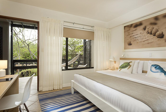 酒店的21间芬奇湾客房围绕着酒店呈环形排列,通过一条迷人的木制走道穿过酒店的景观花园。所有的房间都有带吊床的阳台,非常适合在游览了一天岛屿后阅读或打盹。客房面积为20平方米(217平方英尺),可选择单人房或双人房。